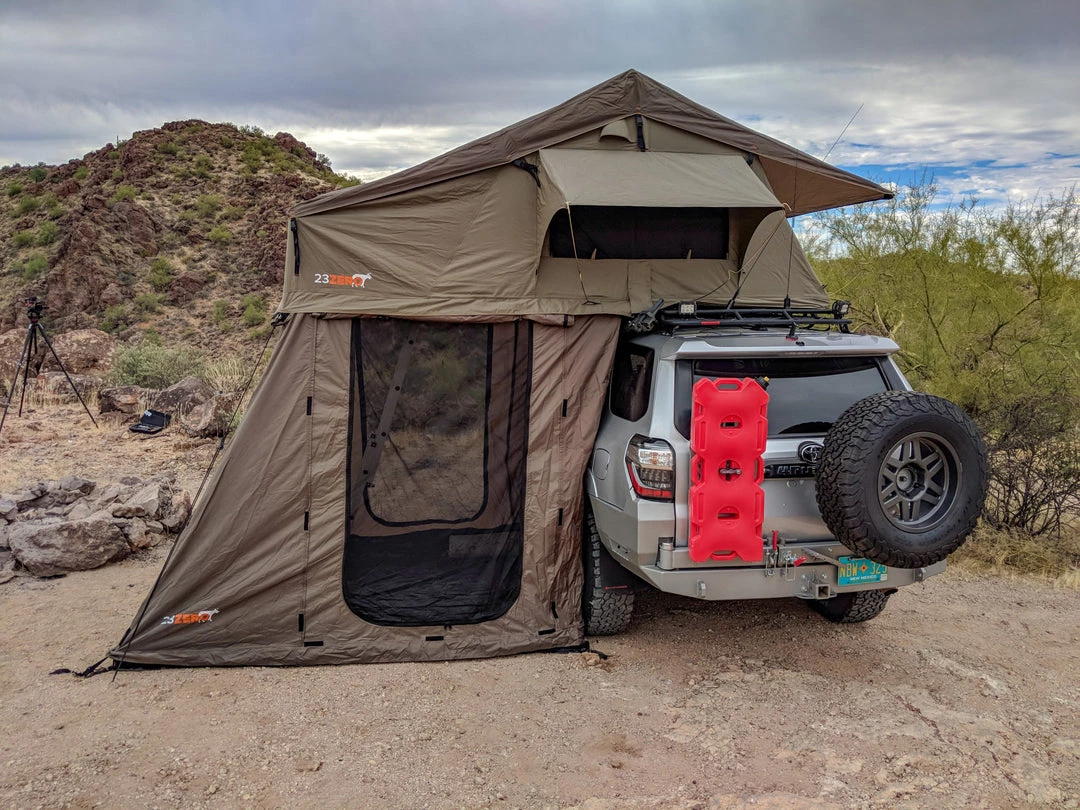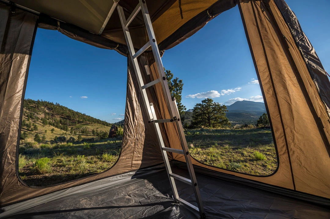 The Walkabout Annex is available in Tall (78 Â inch) or Short (62 Inch)mounting height accommodate most vehicles and trailers. The Annex is made from waterproof Polyester and encases the ladder for dry entrances and exits. The Annex room will allow storage, an extra place to sleep. Keep dry with the Annex Walkabout.