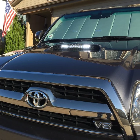 This bracket kit allows you to attach a Rigid 10″ single row LED light into the hood scoop of your 4Runner. The scoop on the 4Runner is all show and is non functional as far as the engine is concerned. We saw an opportunity to put that scoop to good use!