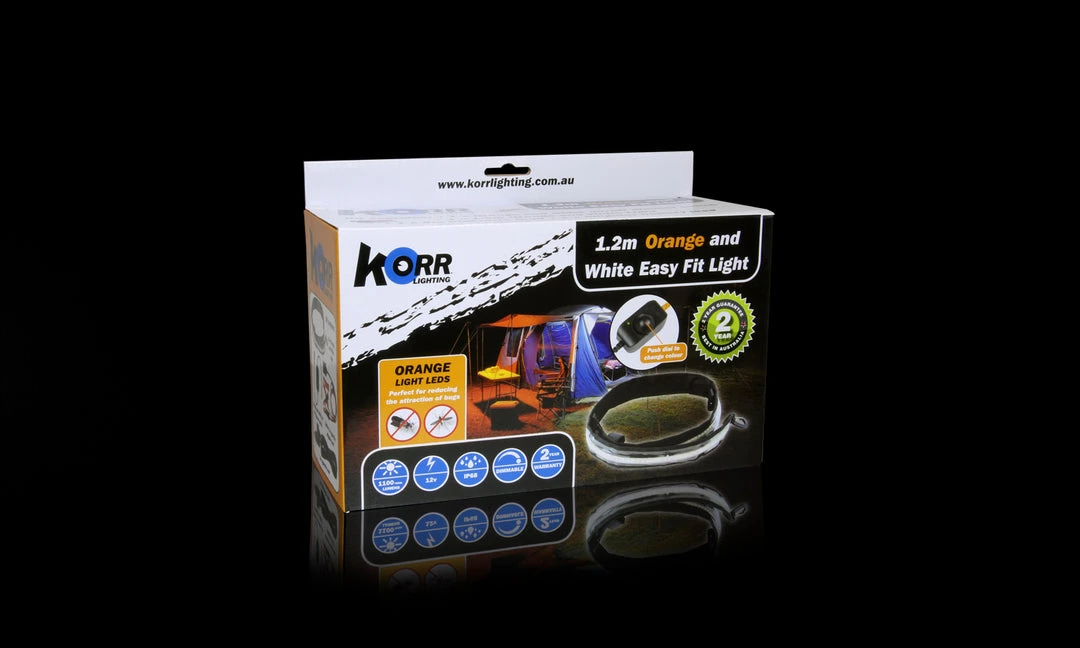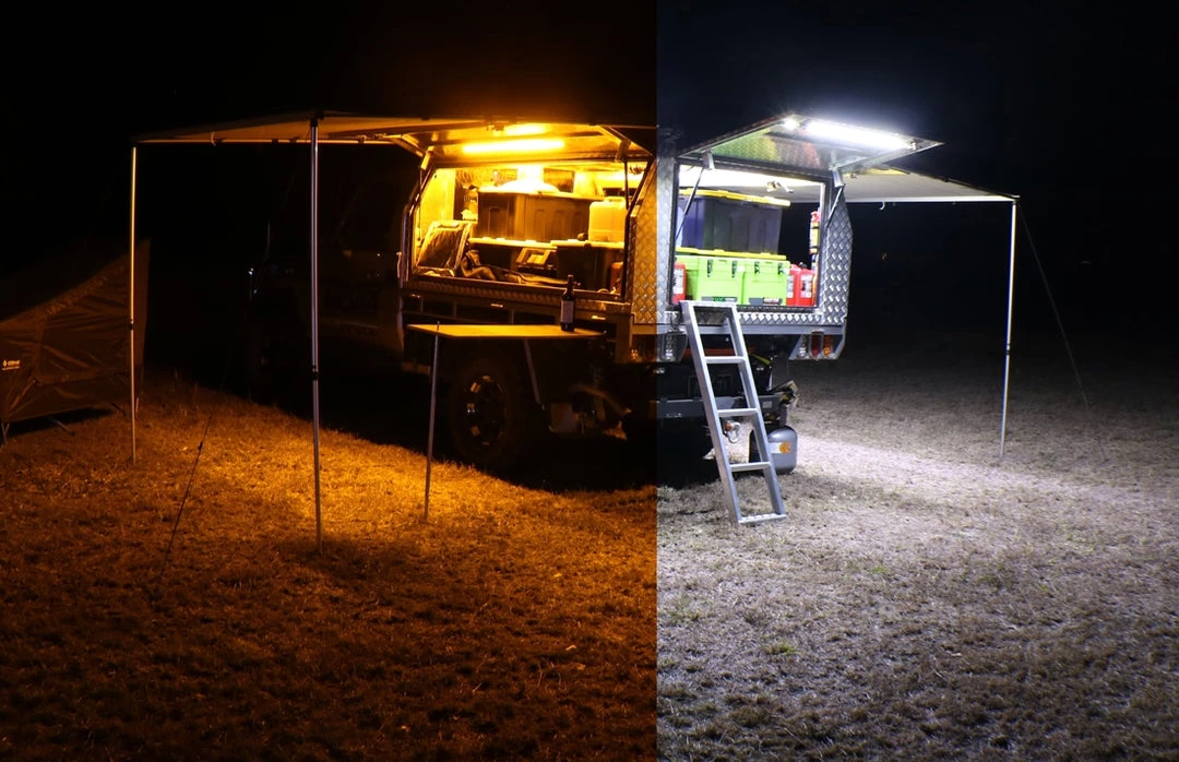 Ideally suited to be used in tent awnings or anywhere you want to set-up a light quickly. The light comes with both orange and white LEDs built into the single strip light; the white light is ideal when there are no bugs around, and the naturally bug-repellant orange light is ideal for when bugs are present. In fact, the orange light reduces the presence of bugs by up to 90%!
