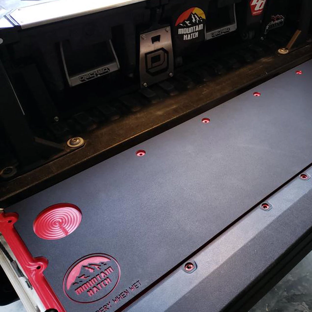Mountain Hatch after market tailgate is perfect for anyone who cooks on the back of their truck, hates banging up their knee on stock tailgates on their knee and it is perfect for a tailgate before any sports event. Mountain Hatch is FDA approved with UV Inhibitors and Cutting Board Safe.Â