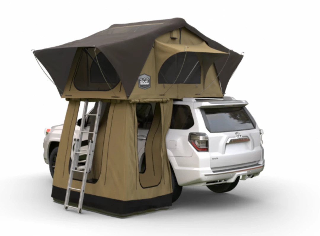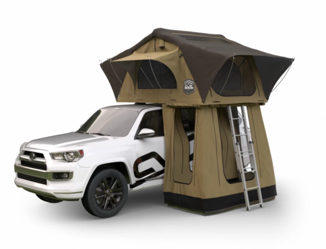 The CVT Mt. Rainier Stargazer tent series can hold over three people, includes an annex room, and has a rooftop window for stargazing.
