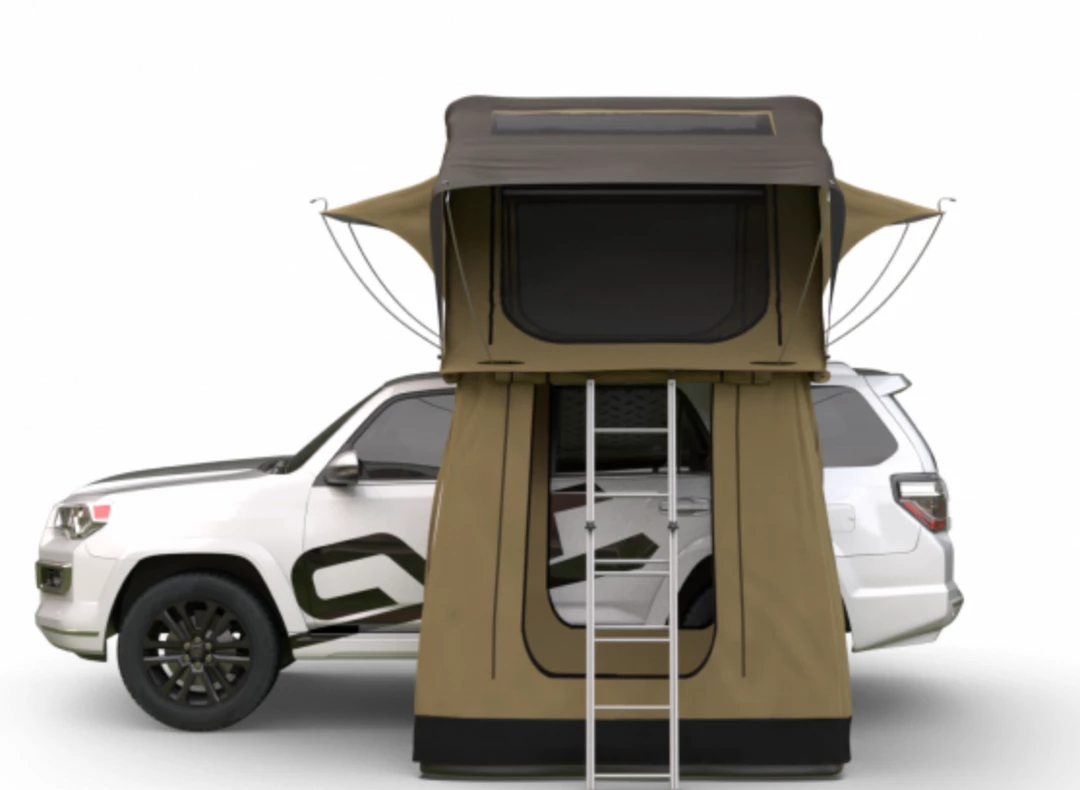 The Mt. Rainier Standard Stargazer Pioneer is the most basic version of the Mt. Rainier series but is still packed with features. It is made from durable 280g poly/cotton rip-stop canvas fabric, which is breathable to fight mold, but is also water-resistant and protects against UV rays. Included with the Pioneer is a washable cotton 3” thick mattress, removable PVC floor, aluminum ladder, and heavy-duty 600g PVC sealed travel cover.