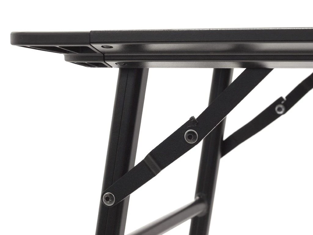 This lightweight, sturdy full-sized camp table is ideal for food preparation, food serving, and gathering around for a sit down camp dinner. Features include a stainless steel top and black powder-coated aluminum frame. Specifically designed to be easily stored UNDERNEATH most Front Runner Slimline II Roof Racks.*