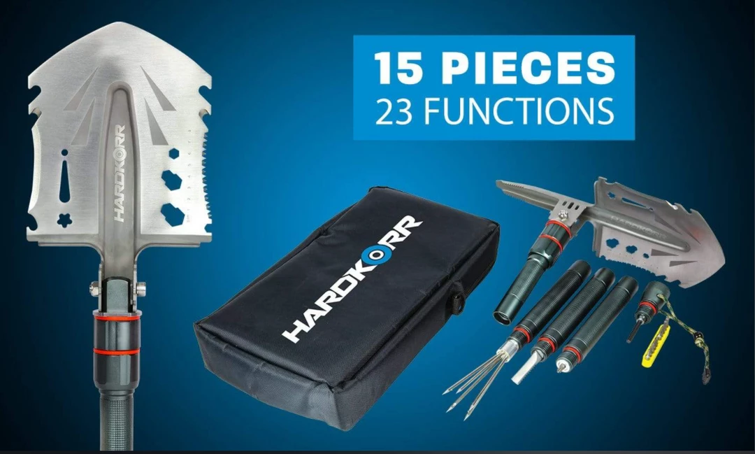This stainless steel multi-tool shovel is the perfect piece of equipment for any camping trip or 4wd adventure. The possibilities are endless, with 15 different attachments and at least 23 applications.
