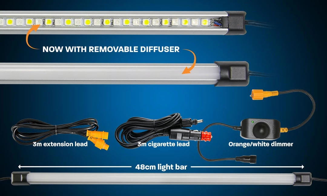 They’ve now taken the next leap forward in design and technology, making lighting your campsite even easier by addressing some of the key gripes campers had with previous LED lighting technology. Their exclusive diffusers, now included with all light bars, create a much wider, more pleasant light beam – no more LEDs shining in your eyes if you’re on the wrong angle! The light bar pole clips and dimmer pole clips make attachment to non-magnetic tent poles much easier.