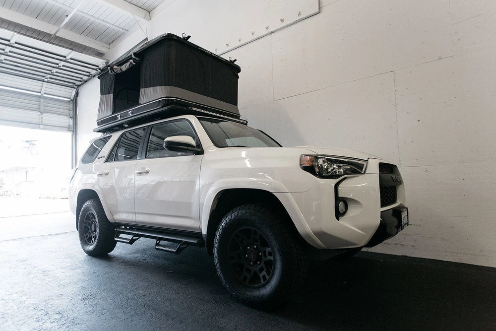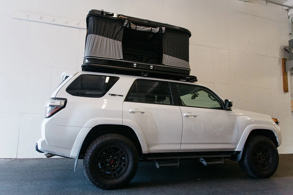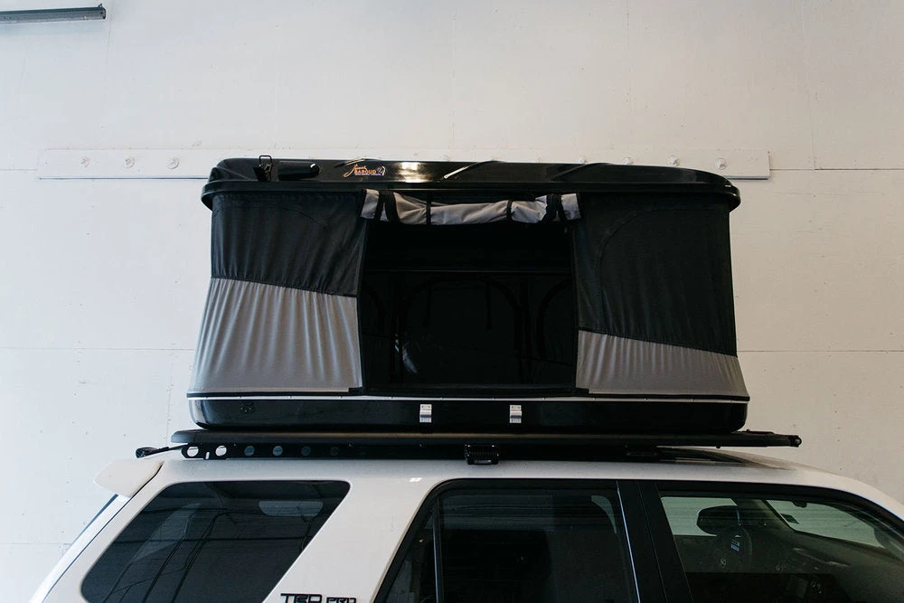 The James Baroud Grand Raid XXL is one of the top-of-the-line rooftop tents offered by James Baroud. With added width and length, it can sleep three people with ease. In addition, the Grand Rail XXL offers additional storage space, two entrances, and a wrap-around window that will make for the ideal, portable and comfortable on-the-road or outdoor sleeping experience.