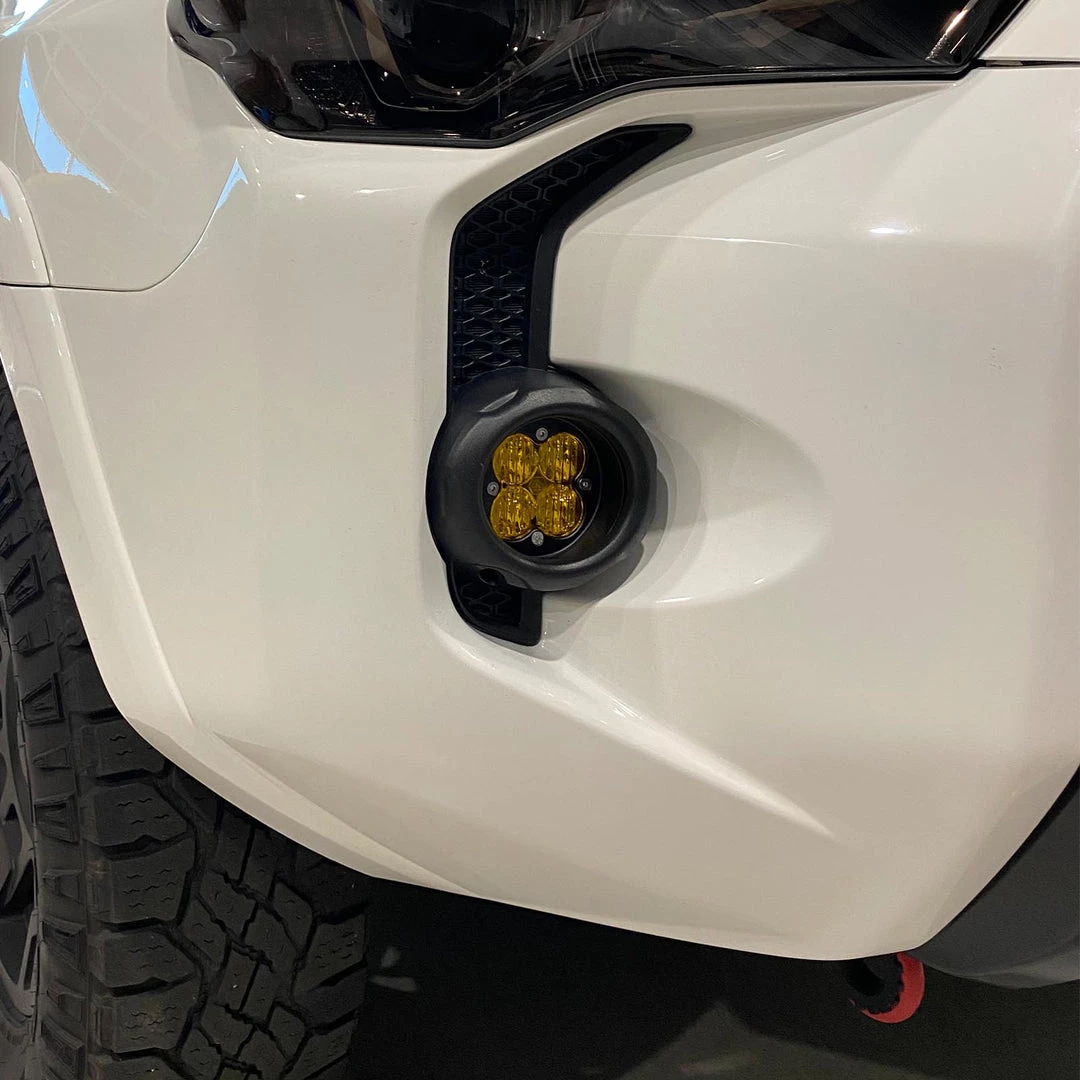 The Toyota Tacoma (12-Current) / 4Runner (10 – Current) / Tundra (14 – Current) Fog Pocket Kit allows you to mount 2 Squadron Series auxiliary lights in the factory location. This Plug and Play kit includes two Squadron Sport Amber Wide Cornering lights, two vehicle specific mounting brackets and a wiring adapter, allowing you to use your factory switch and mounting hardware.Â