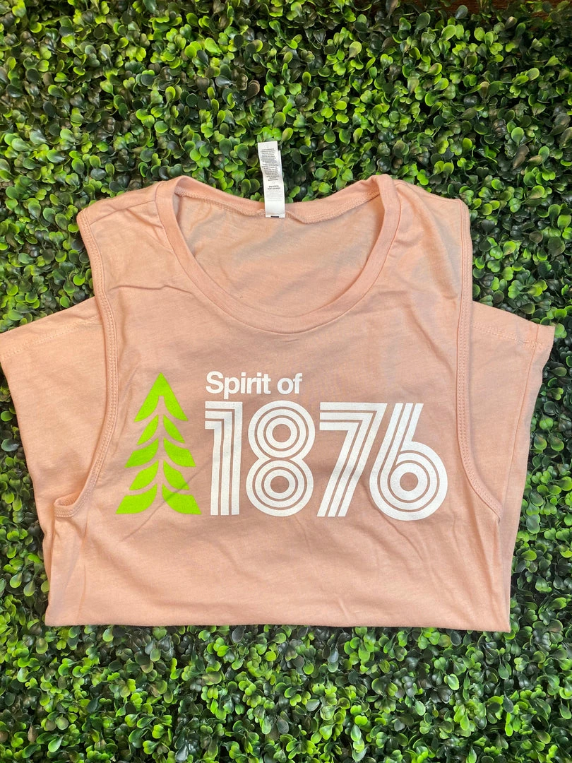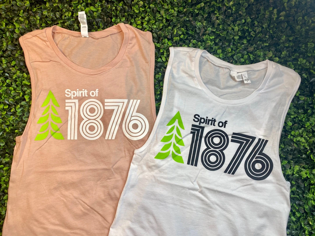 The Spirit of 1876 Women’s Logo Muscle Tank celebrates the drive, passion, and rugged individualism of pioneers past and present who have made Colorado what it is. Our plains, forests, mountains, rivers, and deserts are filled with tracks and treads of those unafraid to wander off the beaten path. The spirit of Colorado has united both natives and transplants since the beginning of our statehood in 1876, and it continues to lead us forward and further out. Our spirit is the Spirit of 1876.