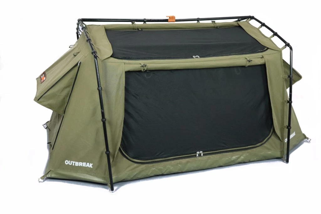 The 23Zero Outbreak 1550 swag is the ultimate 2 person swag. Loaded with features from 4 separate entry ways, 360 panoramic views and dual sky windows to enjoy from the comfort of the 2.75″ thick mattress, this swag makes a common tent look vintage.Â