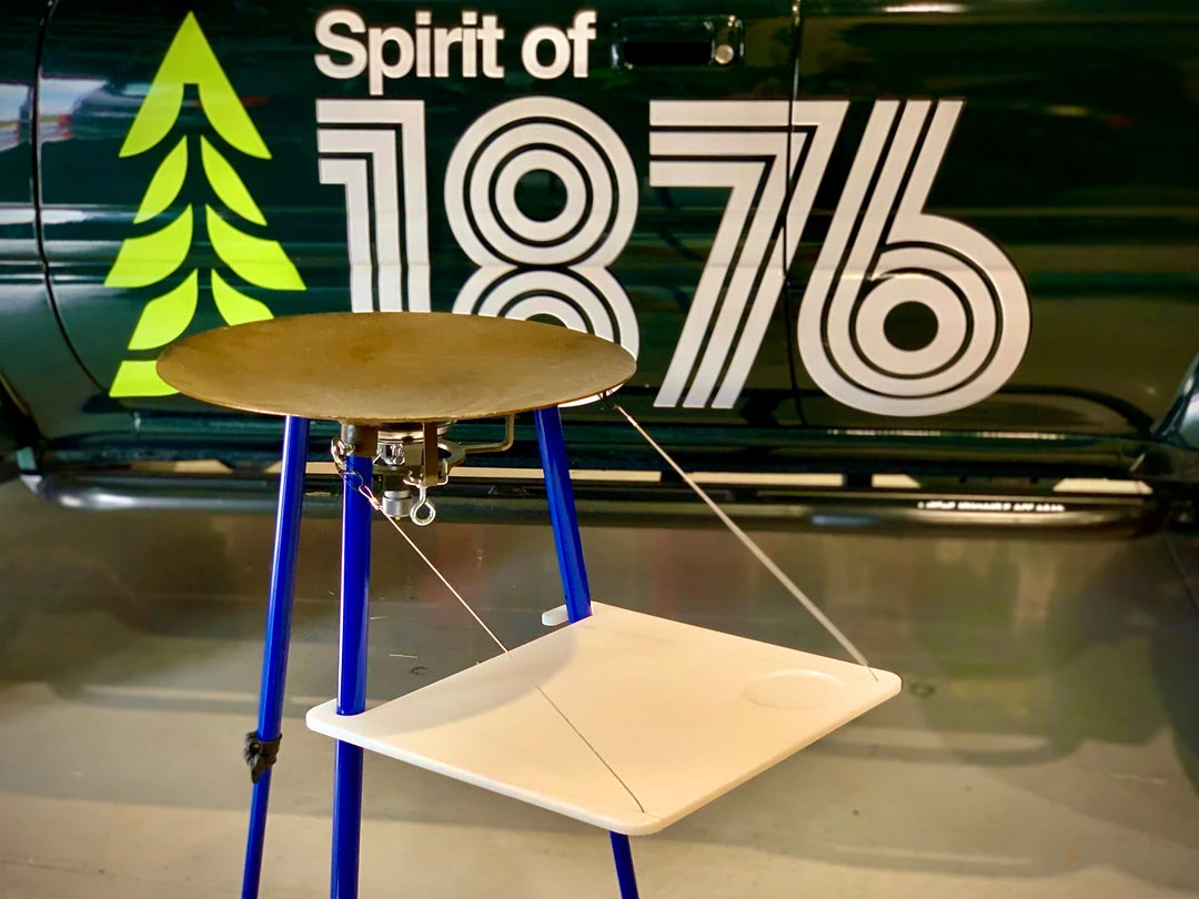 Quick prep table/cutting board for the Tembo Tusk Skottle. Made from 3/8″ HDPE food grade cutting board material and made in Ohio. Comes with the board and 2 guy lines to hold the weight. A stake is included for the opposite leg if you need to drop a heavy load.Â