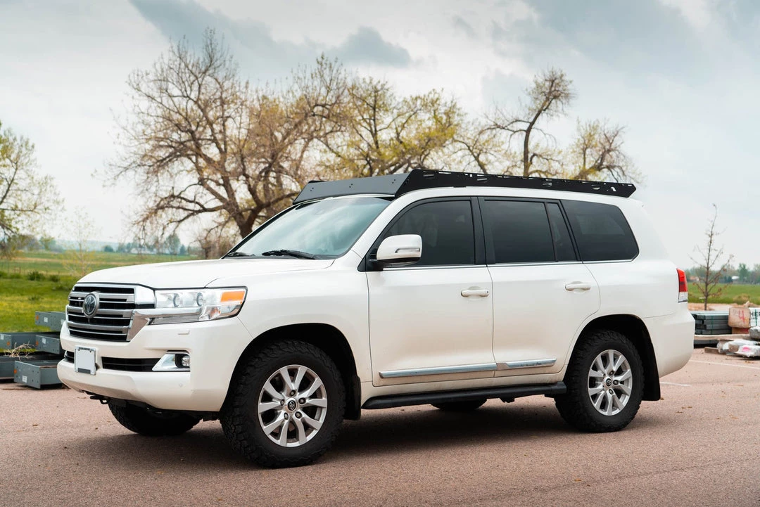 This full-length aluminum roof rack, for the 2008-2021 Toyota Land Cruiser 200 Series (LC200), expands on our lineup of tried and true rack systems. Our racks are some of the toughest on the market and are designed to get your gear to the places that matter the most. Explore more and worry less with our industry-leading ¼” thick aircraft-grade aluminum side panels and stainless steel hardware. Secure your gear by bolting into one of the 10 extrusion crossbars or by strapping it directly to the side plates. This rack is “drill-free” and requires zero modification to your vehicle.